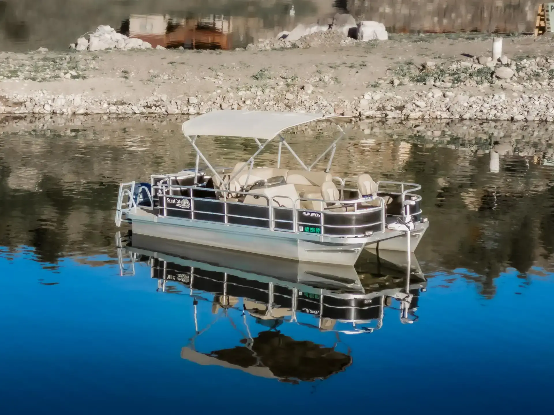 Gallery See What’s Waiting at the Dock Take a closer look at our fully-equipped fishing pontoons, ready and waiting for your next adventure on Panguitch Lake. These photos give you a clear view of the boats you'll be renting — no surprises, just solid setups. Like what you see? Let’s go! Book A Boat Rental